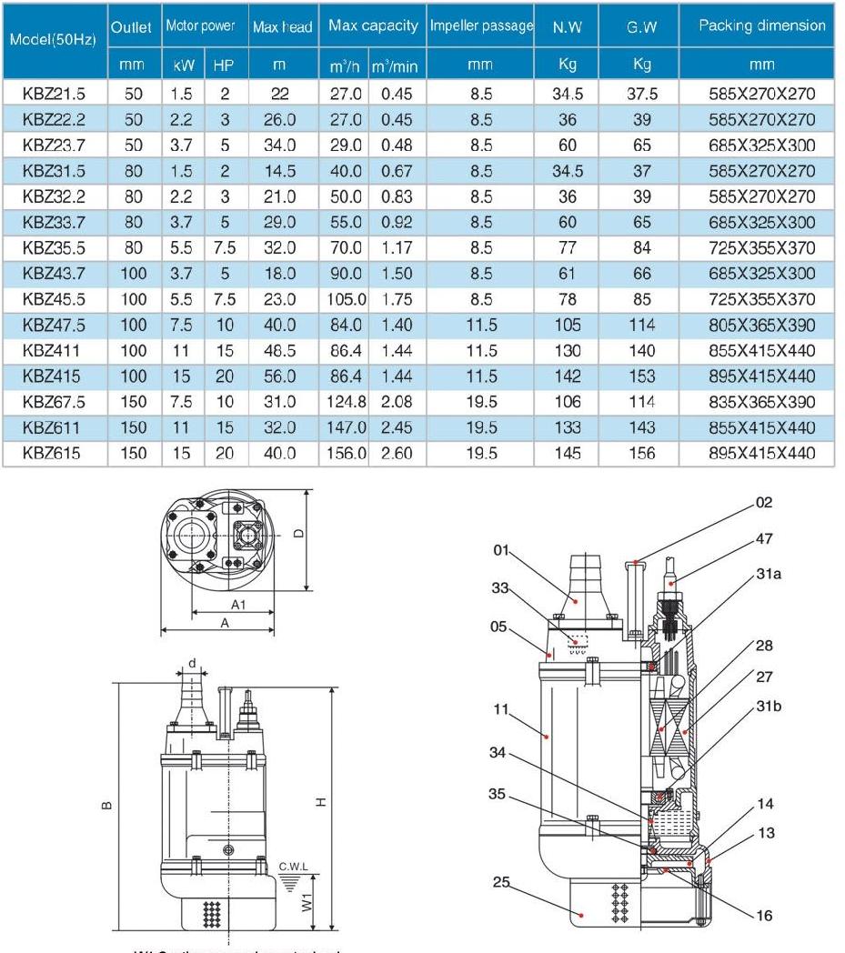 * Chi tiết kỹ thuật Máy bơm nước thải Meudy KBZ 35.5