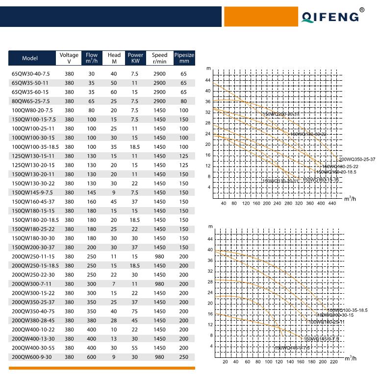 * Chi tiết kỹ thuật Máy bơm nước thải Qifeng 150QW130-15-11